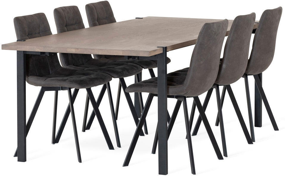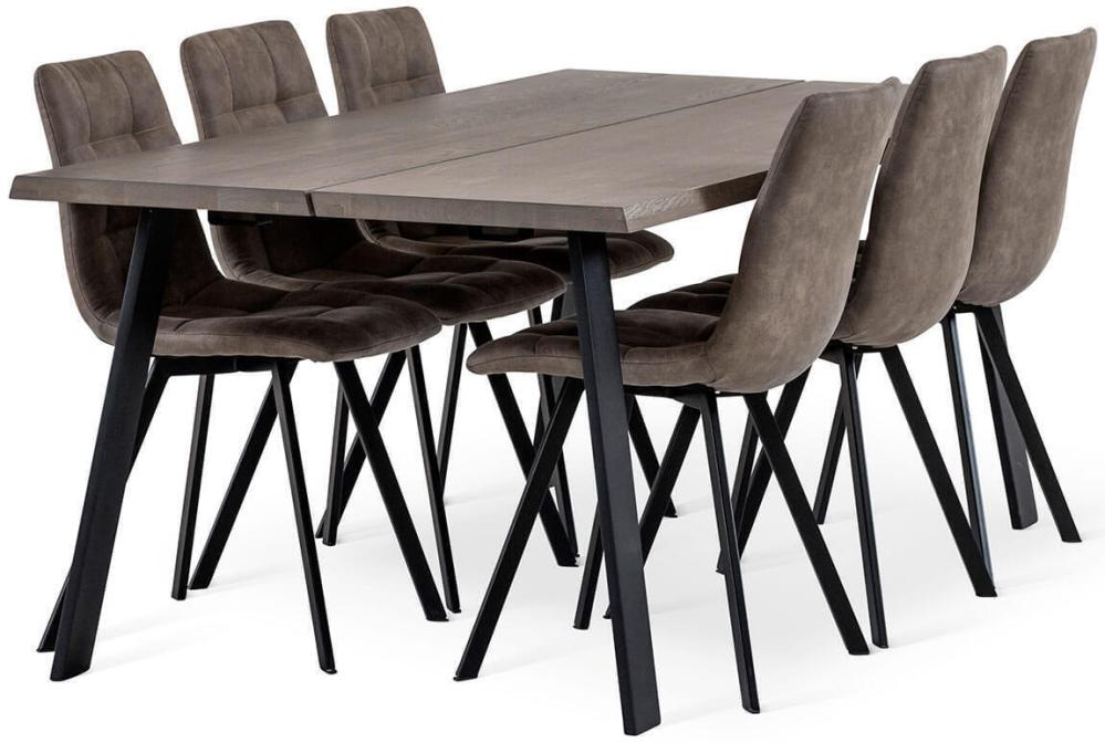 Ruth är en bekväm stol i brunt, beige eller mörkgrått microfiber tyg med underrede i svart metall.