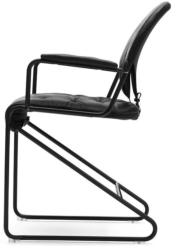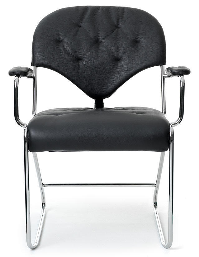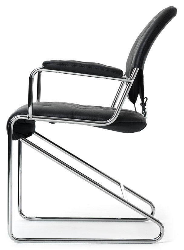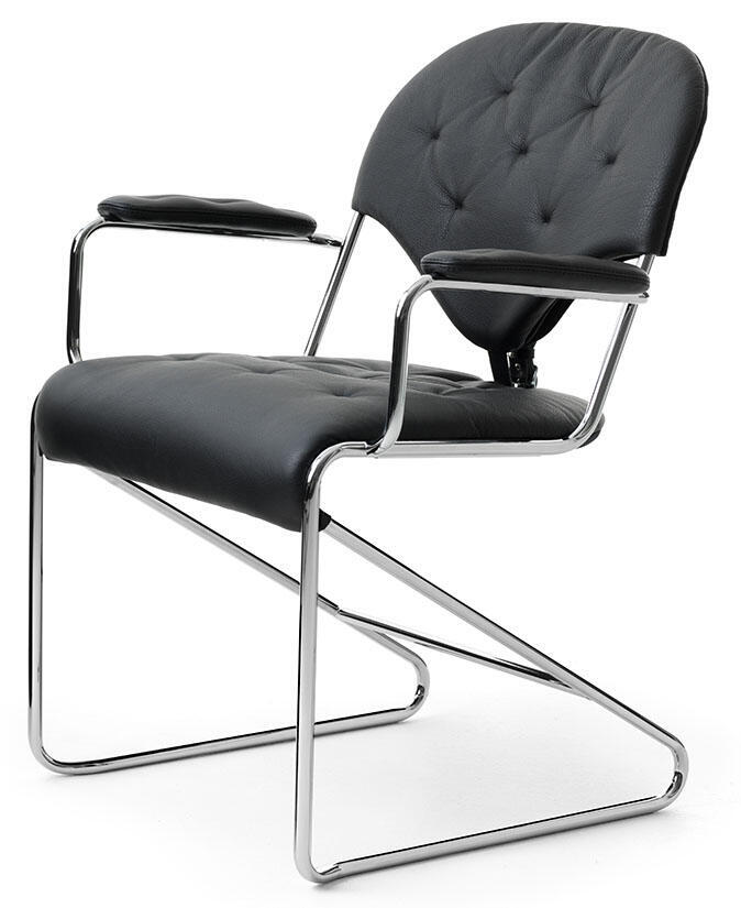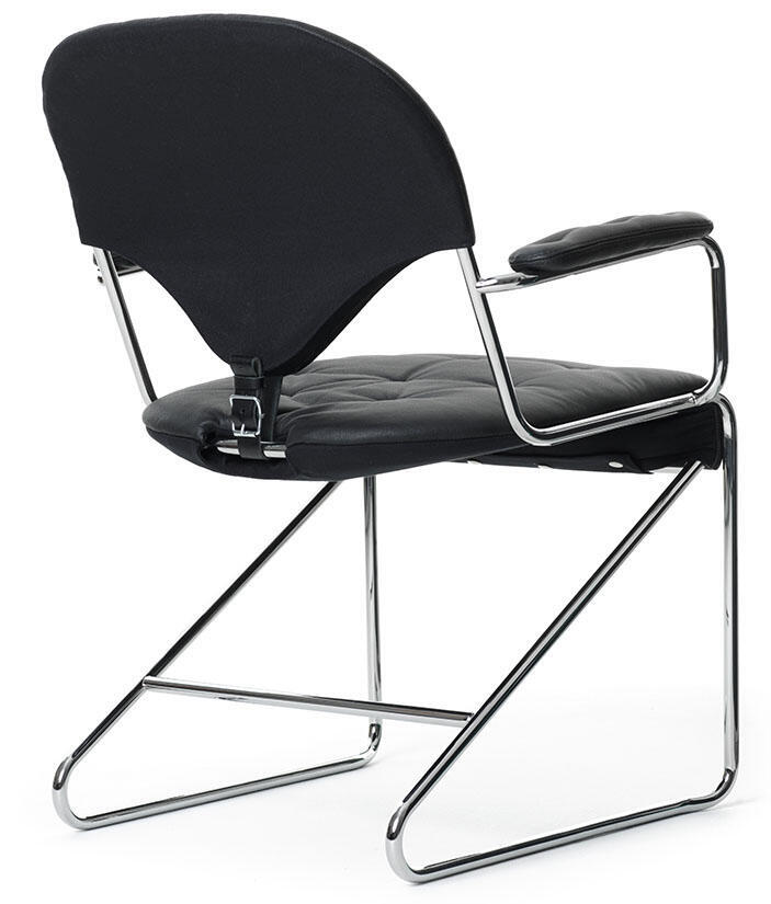 Stativ i krom eller svart. Djuphäftat sittelement med kallskum och baksida i tyg