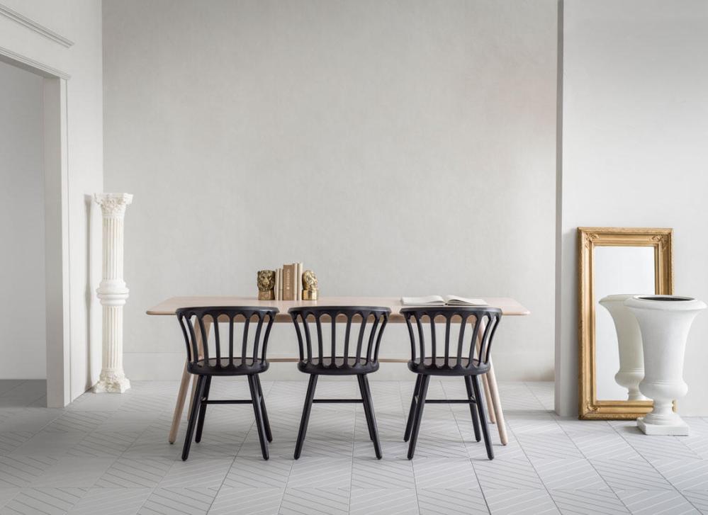 Skapa din egen stil och känsla med San Marco stolen som är gjord i massivträ och har ett ryggstöd som består av åtta böjda ribbor som följer formen på ryggen och är förenade med två bågar i kanterna. Ribborna består sedan av en serie bågar som smälter samman ryggfästet ned mot sätet och följsamt går ihop med den raka linjen på toppen.