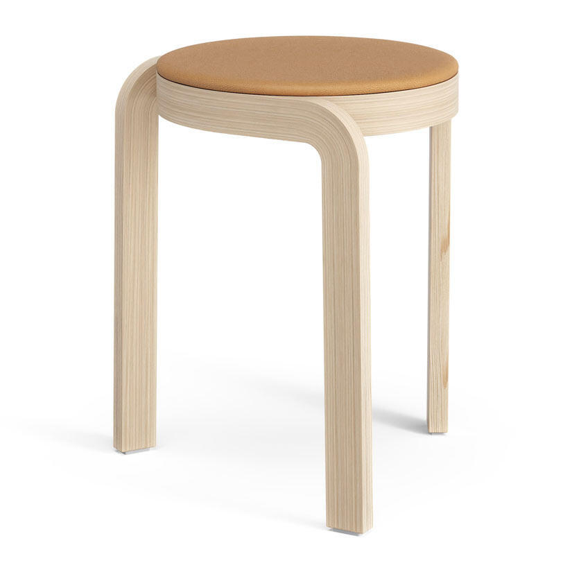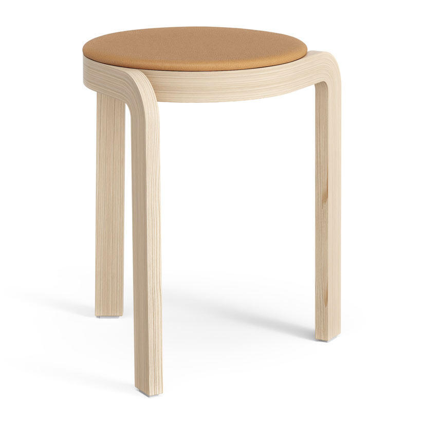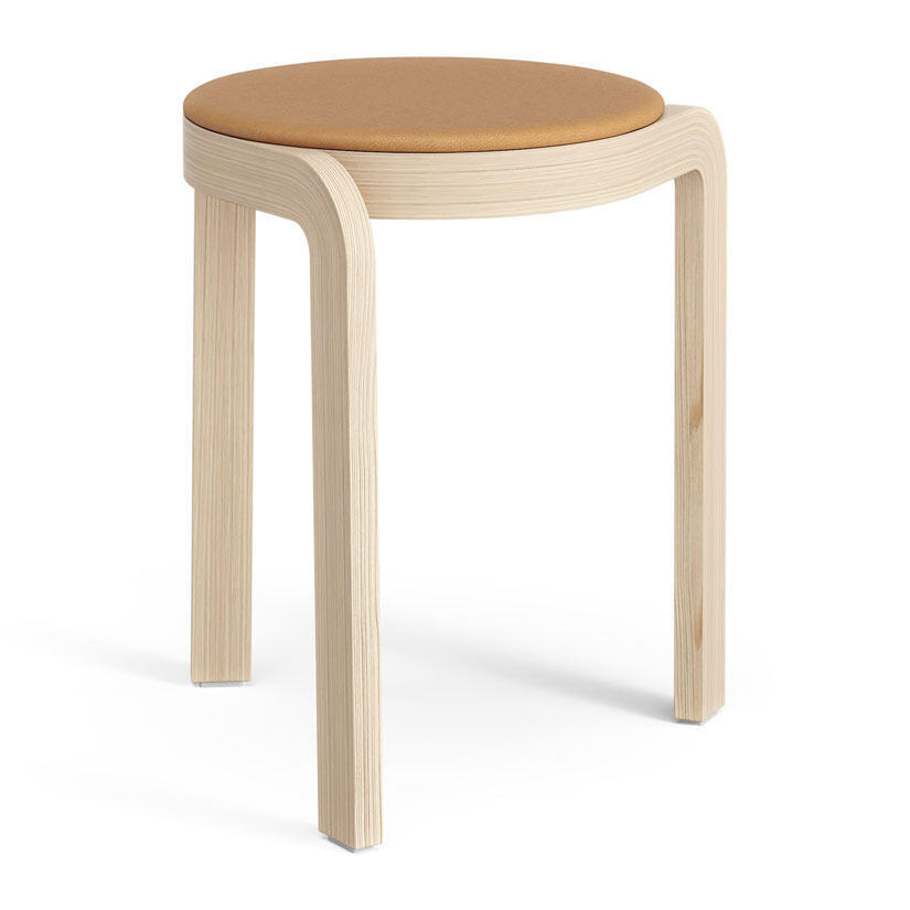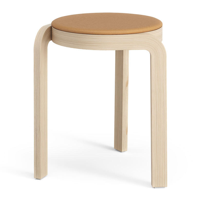 På produktbilderna visas pallen i naturlackad ask med läderdyna Baltique 43001.