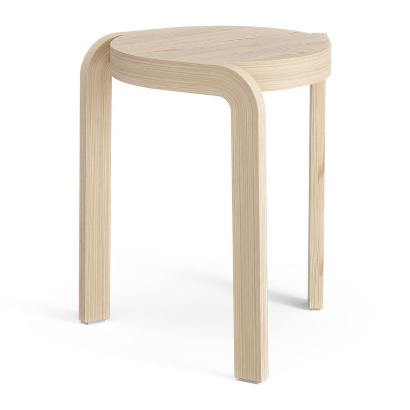 Spin-pallen blev tidigt uträknad för att vara omöjlig att producera. Men genom att utnyttja träets fulla potential och förena det med ett gediget hantverk, kunde pallen tas i produktion år 2012. Pallen tillverkas av Swedese, formgivare Staffan Holm.