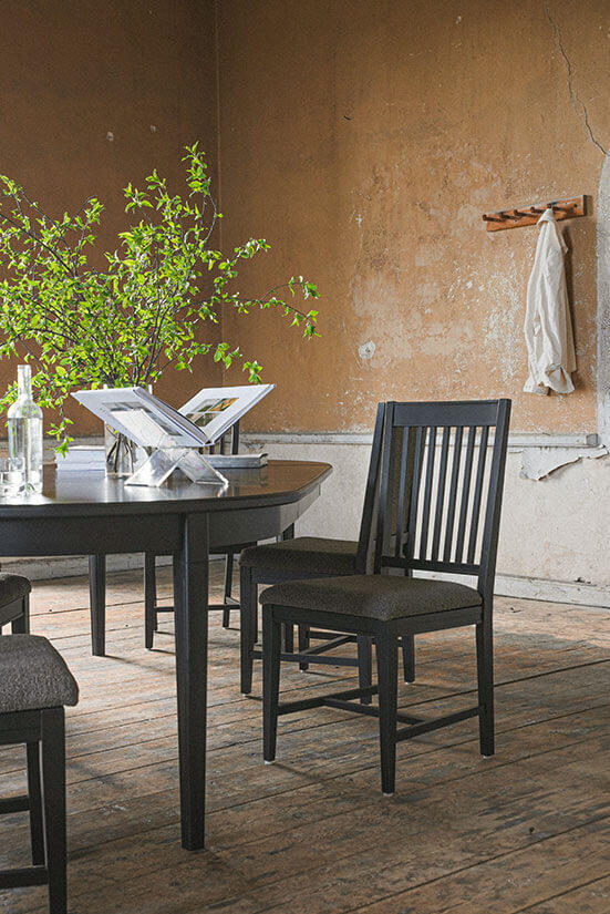 Utö Stol 597 är en stilren och skön stol som är handmålad i flera färger med en bekväm tygsits i valfritt tyg. Inspiration till stolen har fåtts av traditionellt svenskt hantverk. Rena linjer med fin balans mellan då och nu. Utö passar väldigt bra till serien Stockholm från Englesson som innehåller ett brett utbud av kvalitetsmöbler.