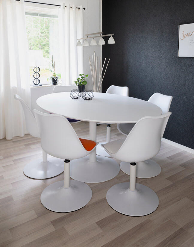 Stolarna Viva är en glädje för ögat såväl som för din kropp. De har rätt proportioner för att vara bekväma och de finns i olika former och stilar. Stolen passar perfekt för alla behov. Stolarna är snurrbara 360 grader, dessutom har de en vadderad sits så att du kan sitta bekvämt - även om du vill dröja vid efterrätten.