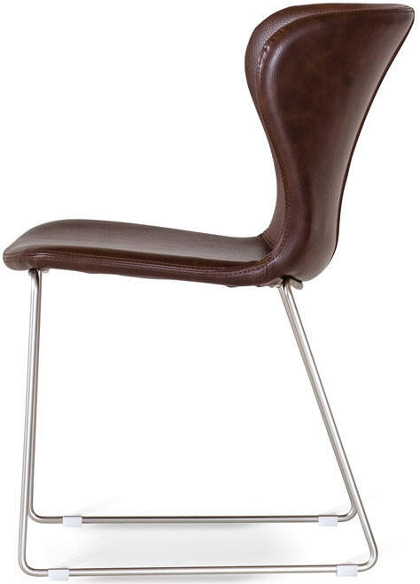 Stolen Wing är en bekväm matstol i modern tappning från Torkelson. Dess skönt rundade rygg ger god följsamhet och avkoppling. Wing passar till flera matbord och har ett borstat eller svartlackat metallunderrede med en sits klädd i brunt konstläder. Stolen finns även i svart konstläder som du kan se genom att klicka här.