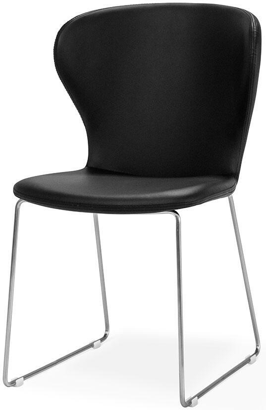 Stolen Wing är en bekväm matstol i modern tappning från Torkelson. Dess skönt rundade rygg ger god följsamhet och avkoppling. Wing passar till flera matbord och har ett borstat eller svartlackat metallunderrede med en sits klädd i svart konstläder. Stolen finns även i brunt konstläder som du kan se genom att klicka här.