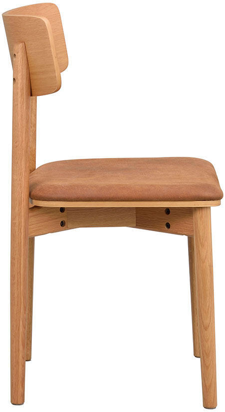 Massiv ek i ben och stomme. Björkplywood med ekfaner i ryggbricka och sits. Sitsen klädd med polyeterskum och Bull lä...