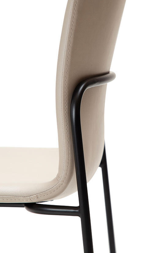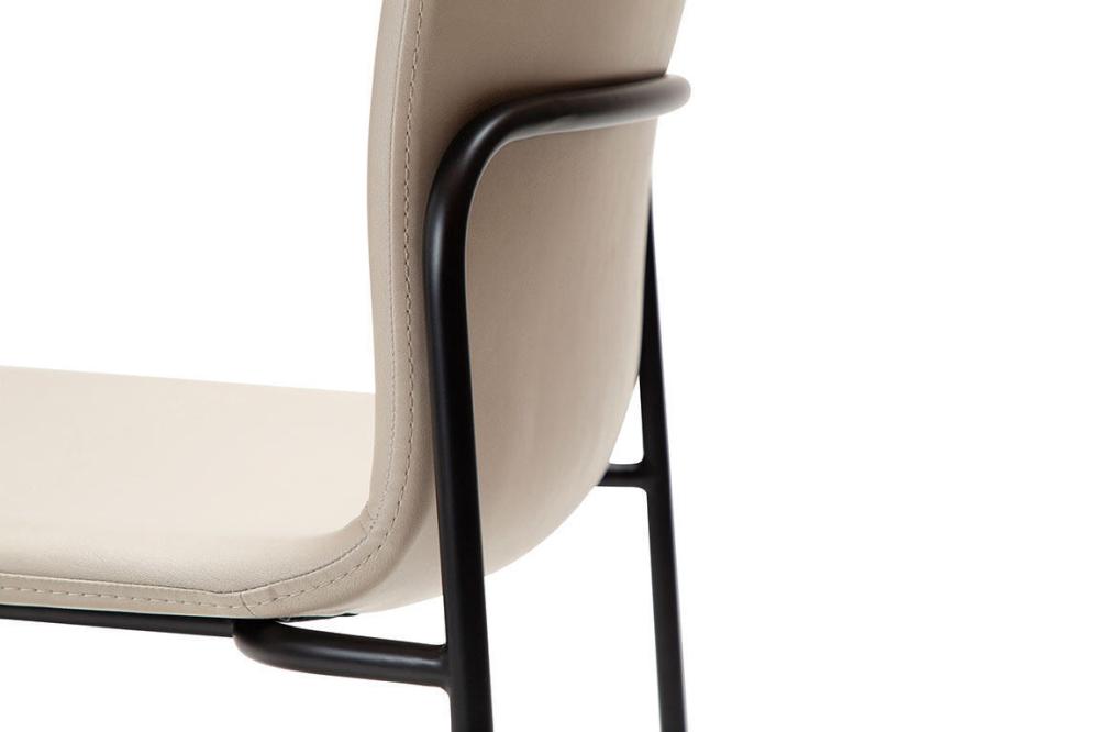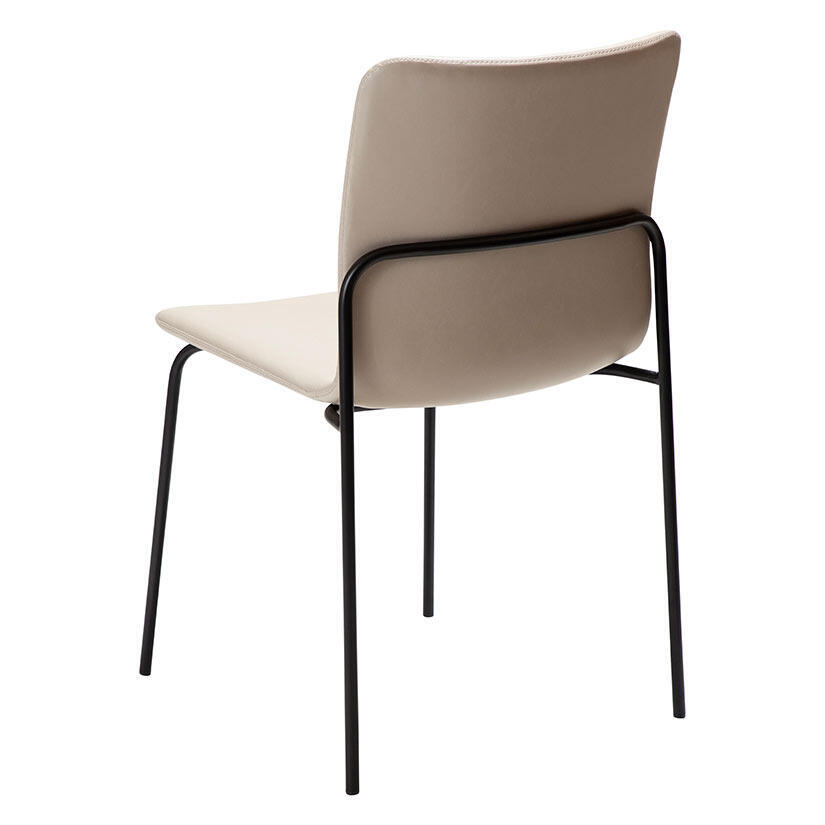 Med en enkel design av Steffensen & Würtz, har WOOF-stolen en lätt vadderad sits och en slimmad metallram. Baksidan har en dekorativ sömnad och den kommer med en mycket karakteristisk kurva som ger bra stöd.