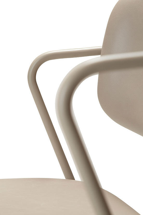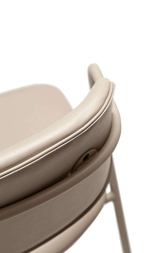 Här är stolen klädd i ett högkvalitativt konstläder i två valbara färger, en bit ner på sidan under Liknande produkter kan du hitta Zed klädd i vintage konstläder och i ett slitstarkt möbeltyg samt som hög och låg barstol såväl loungefåtölj.