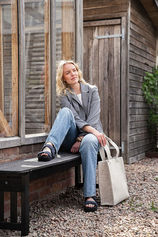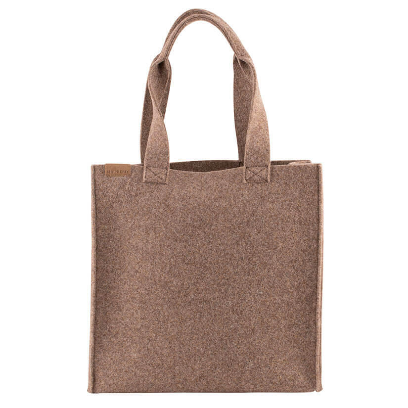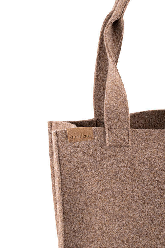 Shepherd Adria är en rymlig shopper i ull. Väskan har dubbla handtag upptill. Ofodrad. Storlek 40x35 cm. Finns i flera naturnära färger.