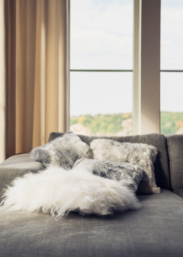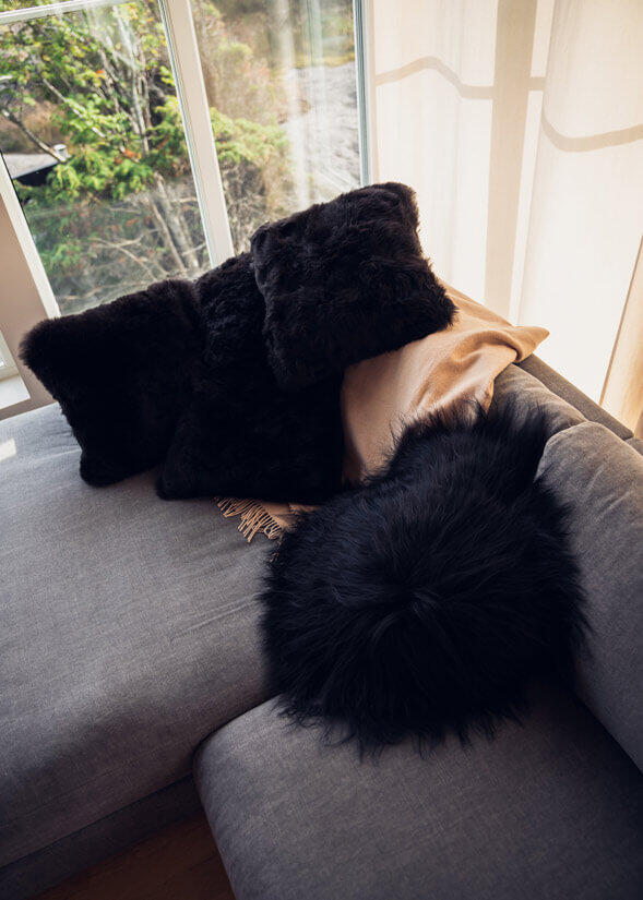 Icelandic Sheepskin Pillow är en underbart skön, varm och lyxig prydnadskudde som passar perfekt till soffan, sängen eller som komplement till Cuero Designs egen fladdermusfåtölj. Kuddarna levereras med stoppning och är klädda av det allra finaste isländska lammskinnet med en fin baksida av canvastyg. Fårskinnskuddarna finns i en kort- och långhårig variant i tre olika färger; svart, vit och grå. Storlek ca 35x35 cm.