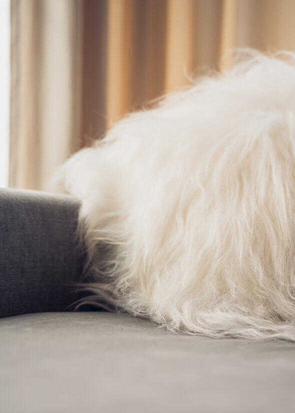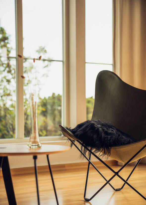 Icelandic Sheepskin Pillow är en underbart skön, varm och lyxig prydnadskudde som passar perfekt till soffan, sängen eller som komplement till Cuero Designs egen fladdermusfåtölj. Kuddarna levereras med stoppning och är klädda av det allra finaste isländska lammskinnet med en fin baksida av canvastyg. Fårskinnskuddarna finns i en kort- och långhårig variant i tre olika färger; svart, vit och grå. Storlek ca 35x35 cm.