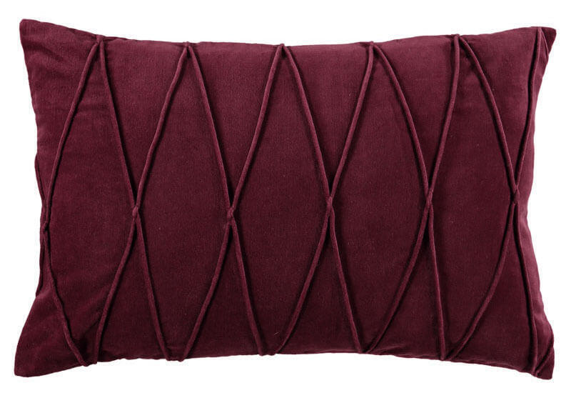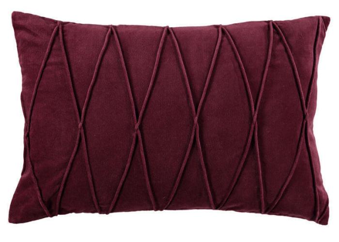 Ina, enfärgat kuddfodral i sammet med dekorativa stickningar på framsidan.