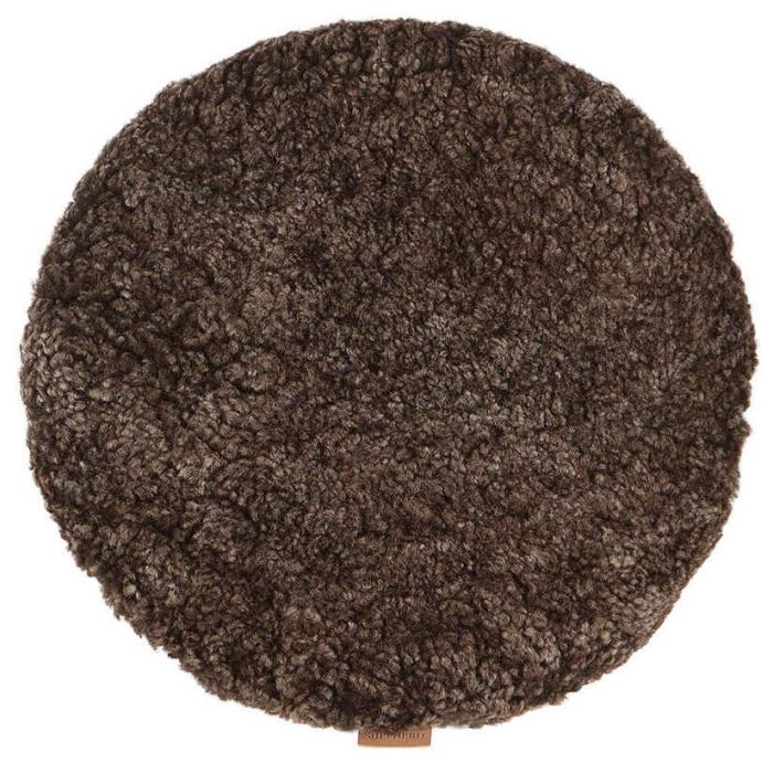 Shepherd Jill rund 36 cm. En stolsdyna med ovansida i mjuk korthårigt fårskinn ifrån Australien och undersida i vävd textil med antiglid som håller stolsdynan på plats. Stolsdynan har en skön skumgummi vaddering för bästa komfort. Alla fårskinn är naturliga och kan därför variera i sin naturliga struktur. Tjocklek ca 3 cm.