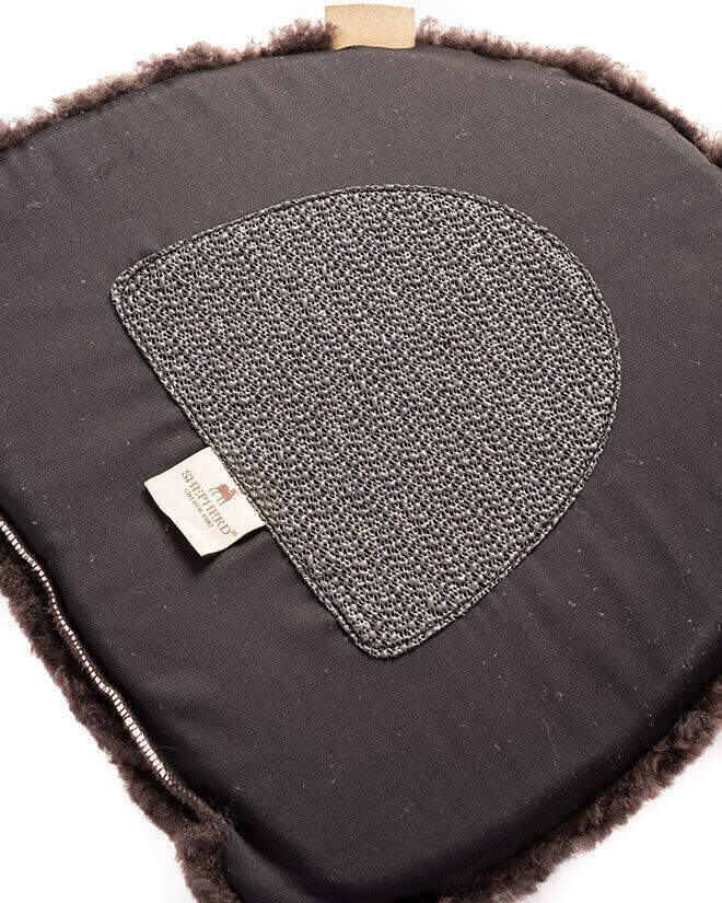 Shepherd Judith. En stolsdyna med ovansida i mjuk korthårigt fårskinn ifrån Australien och undersida i vävd textil med antiglid som håller stolsdynan på plats. Stolsdynan har en skön skumgummi vaddering för bästa komfort. Alla fårskinn är naturliga och kan därför variera i sin naturliga struktur. Tjocklek ca 3 cm.