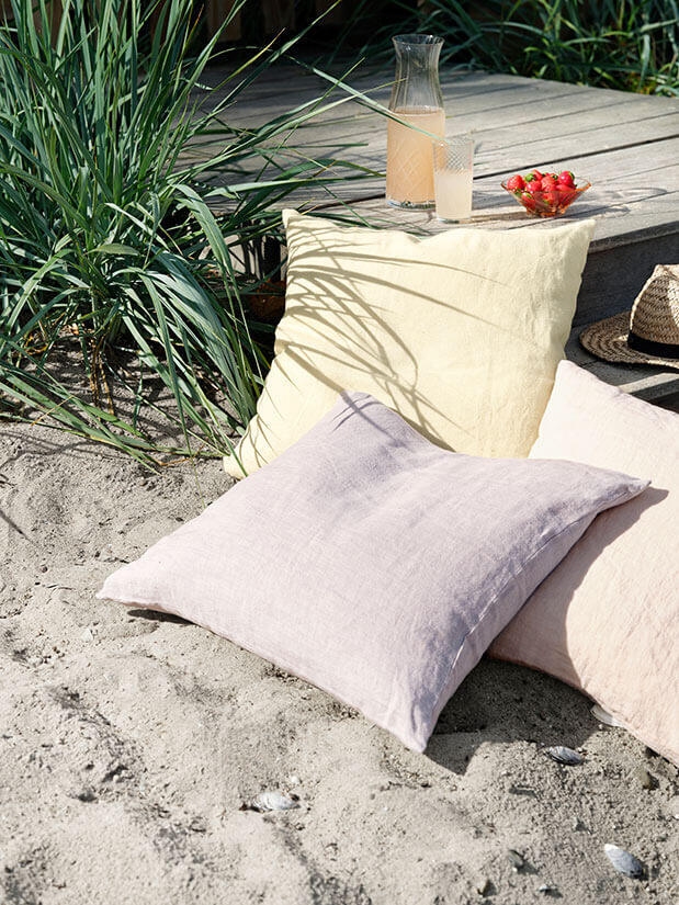 Linen är ett handgjort kuddfodral i enfärgad linne. Tillgänglig i ett brett urval av vackra färger med en otroligt mjuk och skön struktur. Fodralet mäter 50x50 cm. Den här modellen är i färg misty lavender.