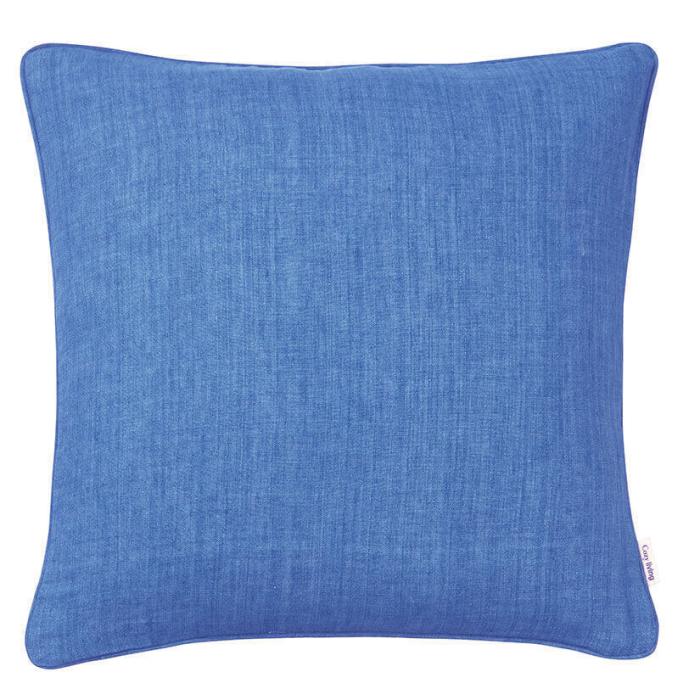 Linen är ett handgjort kuddfodral i enfärgad linne. Tillgänglig i ett brett urval av vackra färger med en otroligt mjuk och skön struktur. Fodralet mäter 50x50 cm. Den här modellen är i färg sea blue.