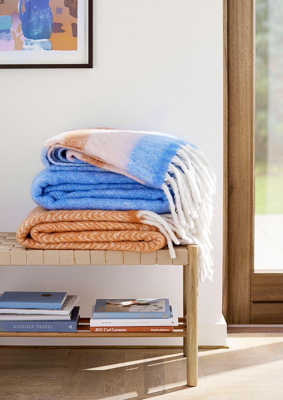 Mathea är en vacker och supermjuk ullpläd med långa, fluffiga tofsar och en tillfredställande tjocklek, perfekt för att mysa under ljumma sommarkvällar. Pläden är 130x170 cm. Ullfilten finns i flera färger, här i färg Sea Blue.
