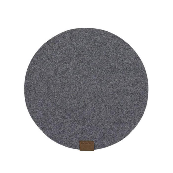 Vilma är en rund bordstablett i tovad ull. Tabletten kan även med fördel användas som grytunderlägg eller som stolsdyna. Dekorativ detalj i läderimitation. Bordstabletten är tillverkad av Shepherd of Sweden.
