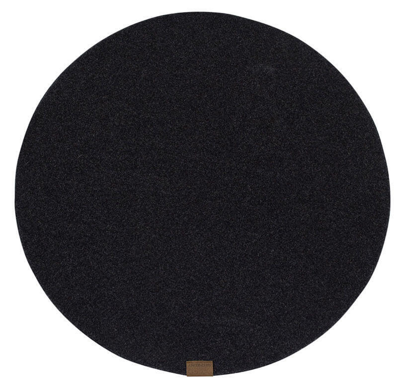 Vilma är en rund bordstablett i tovad ull. Tabletten kan även med fördel användas som grytunderlägg eller som stolsdyna. Dekorativ detalj i läderimitation. Bordstabletten är tillverkad av Shepherd of Sweden.