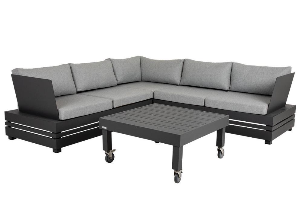 Stilren komfort med detaljer som tål att skärskådas. Ambon är en loungegrupp i matt antracitfärgad aluminium med generösa mått samt pearl grey dynor i olefintyg. Soffan består av få men flexibla delar, har hög sittkomfort där du sitter djupt och mjukt. Samtliga dynor är allvädersdynor. Soffbordet är framtaget med en ny unik teknik som ger ett dämpande ljud på bordsskivan.