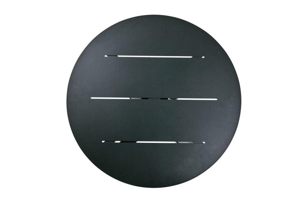 Laminatskivorna finns i tre storlekar/utföranden och i flera färger. Den här modellen är rund 70 cm i verklighetstrogen stenimitation (beige terrazzo).
