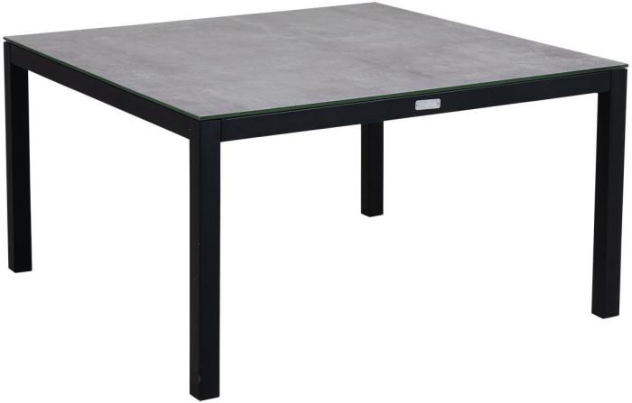 Elegant soffbord till trädgårdsserien Belfort. Bordet i vit eller svartlack med stilren 3D-printad glasskiva i betonglook passar väldigt bra till de andra utemöblerna i serien. Bordet är i fyrkantigt 90x90 cm utförande, finns även i storlek 140x70 cm.