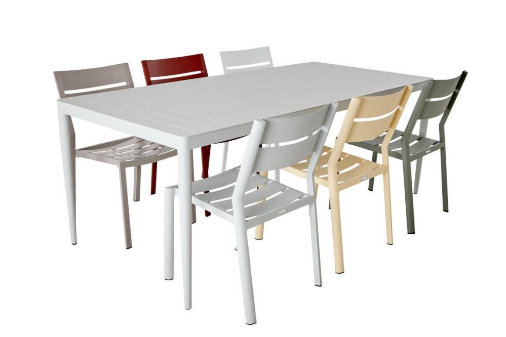 I den här utegruppen har Bigby kombinerats med Delia matstolar. Dessa moderna stapelstolar är tillverkade av mattlackad aluminium och finns i flera färger. Delia-stolarna har ett modernt formspråk med snyggt utformade detaljer och är lätta att stapla för smidig förvaring. För allra bäst sittkomfort kan du komplettera med sittdynor. Skapa en bekväm och stilren matplats utomhus med Bigby och Delia.
