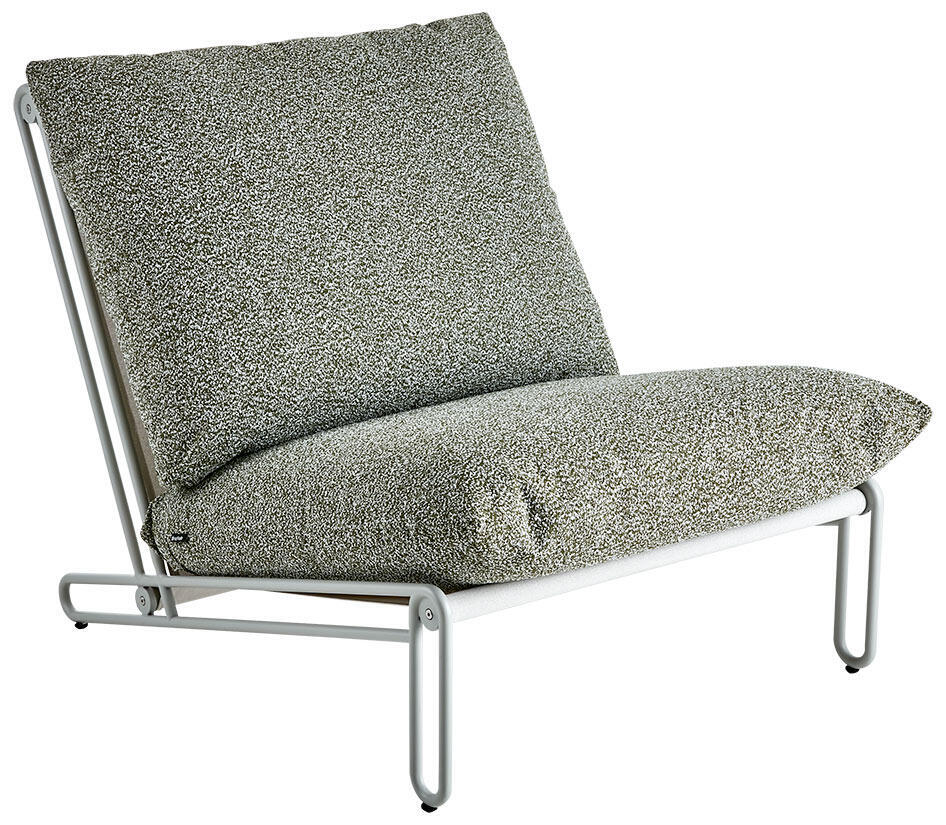Loungefåtöljen Blixt är en bekväm, tuff och byggbar fåtölj som med sina vinklar och öppna stommar i aluminium skapar en plats att koppla av på. Fåtöljen fångar ens blick båda som ensam fåtölj eller utbyggd till soffa. Stomme i svart med dynor i beige eller grått, alternativt ljusgrå stomme med dynor i grönt.