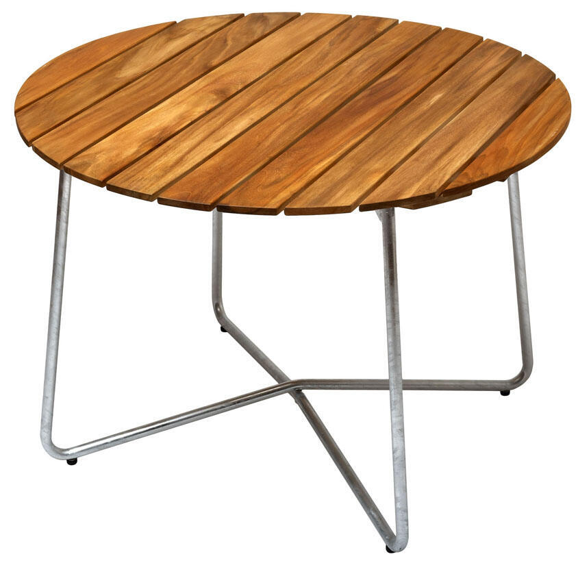 Bord 9A Ø100 cm Obehandlad Teak / Varmförzinkat Stativ Bord