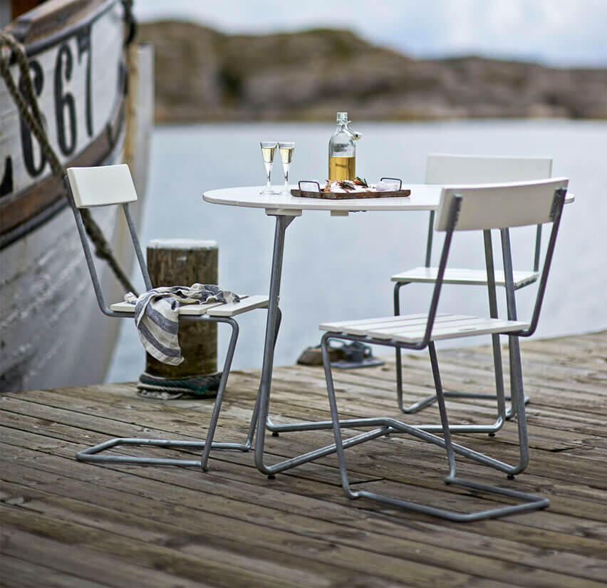 Det klassiska runda bordet 9A från Grythyttans Stålmöbler finns i två storlekar, med en diameter på 100 eller 120 cm. Borden passar utmärkt i bersån eller på altanen och med fördel tillsammans med fåtölj A2 eller Stol 1. Borden tillhör Klassikerserien, har avtagbart stativ för smidig förvaring och går att få i oljelaserad furu eller oljad ek, obehandlad teak och vitlackad ek med varmförzinkat stålstativ.