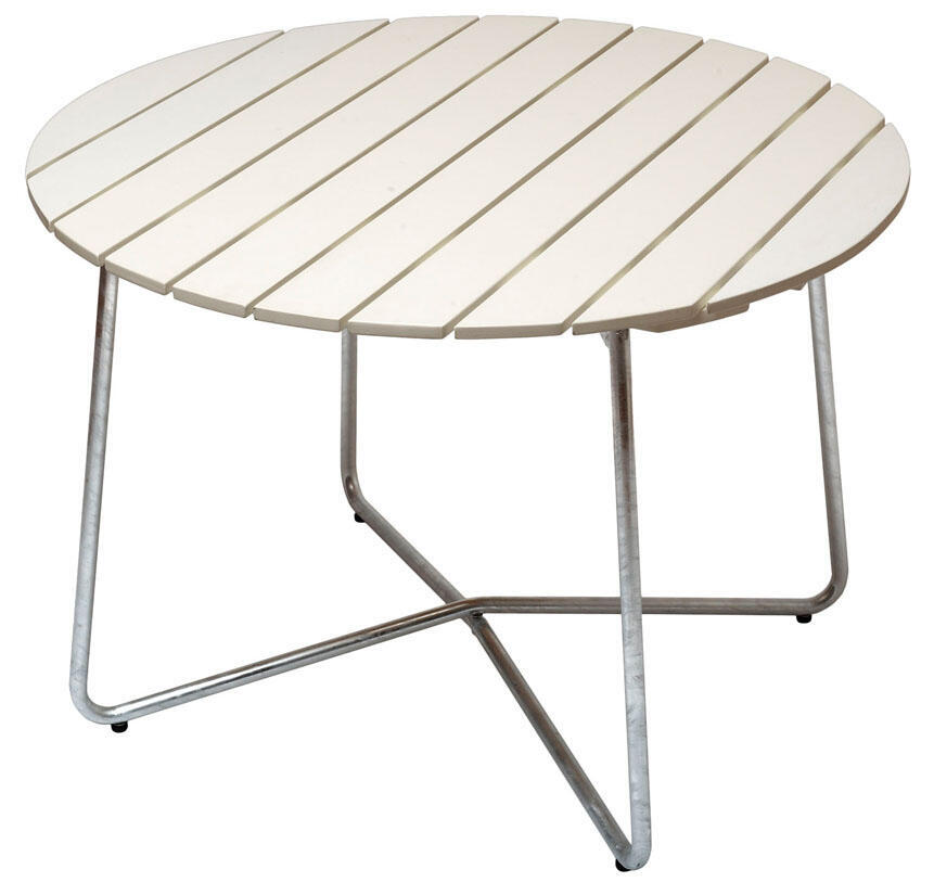 Det klassiska runda bordet 9A från Grythyttans Stålmöbler finns i två storlekar, med en diameter på 100 eller 120 cm. Borden passar utmärkt i bersån eller på altanen och med fördel tillsammans med fåtölj A2 eller Stol 1. Borden tillhör Klassikerserien, har avtagbart stativ för smidig förvaring och går att få i oljelaserad furu eller oljad ek, obehandlad teak och vitlackad ek med varmförzinkat stålstativ.