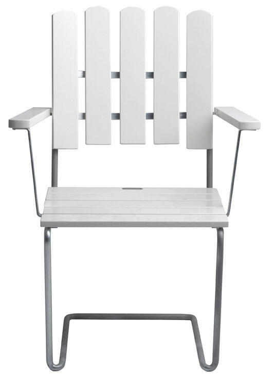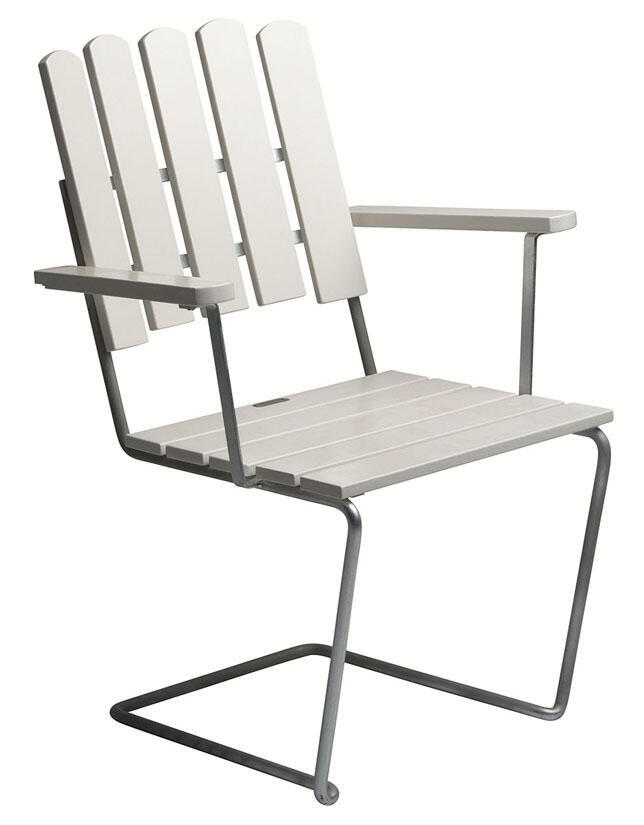 Fåtölj A2 är trotjänaren och kanske det som mest förknippas med Grythyttan Stålmöbler. Designades till Stockholmsutställningen år 1930 av Artur Lindqvist. Karmstolen har funnits i bersåer, på utomhusserveringar och i trädgårdar sedan dess. Stativet i massivt fjäderstål ger lång livslängd och den rogivande, välkända svikten. En möjlig förklaring till att fåtöljen fortsatt är omåttligt populär efter flera decennier kan vara kombinationen av den stilrena designen och den höga kvalitén. Fåtöljen A2 finns i flera utföranden och har en design som gör den stapelbar, perfekta lösningen för den mindre uteplatsen eller caféet. Gör stolen både tystare och lättare att flytta på hårt underlag genom de smidiga golvskydden som finns som tillbehör. Stolen ingår i Klassikerserien från Grythyttan Stålmöbler som innehåller flera sittmöbler, bord och komplement till trädgården.