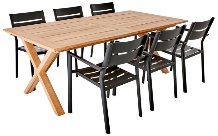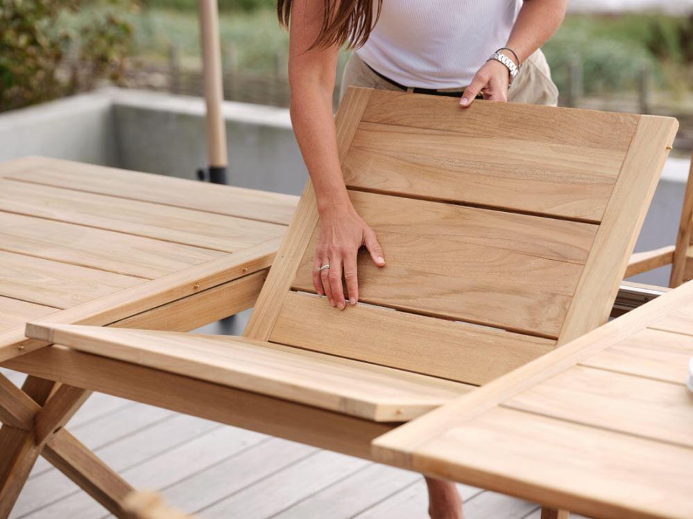 Brutus, ett mästerverk i teak, bär på en tidlös charm och åldras vackert över tid. Med sin imponerande längd på 200 cm som kan utökas till 265 cm med den inkluderade butterflyskivan, är Brutus redo att anpassa sig efter varje tillfälle.