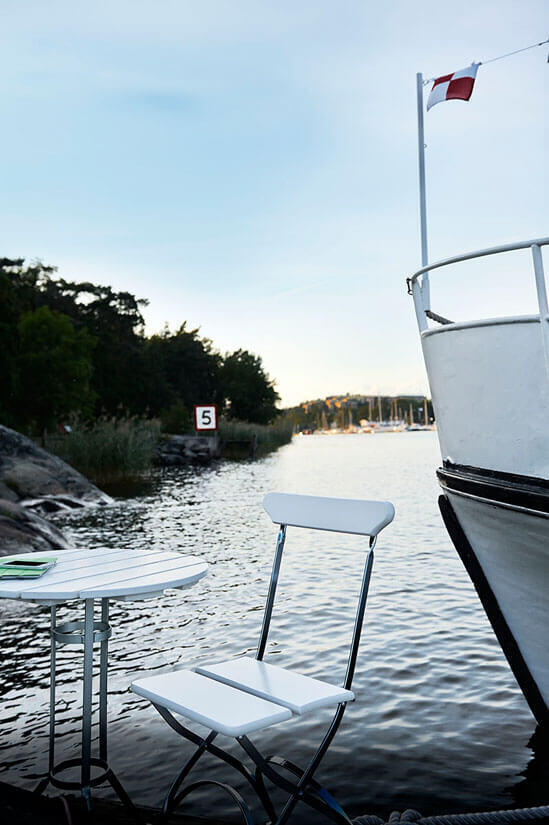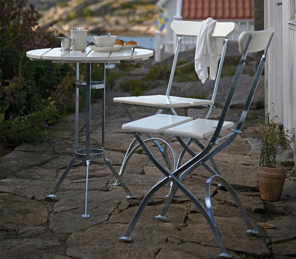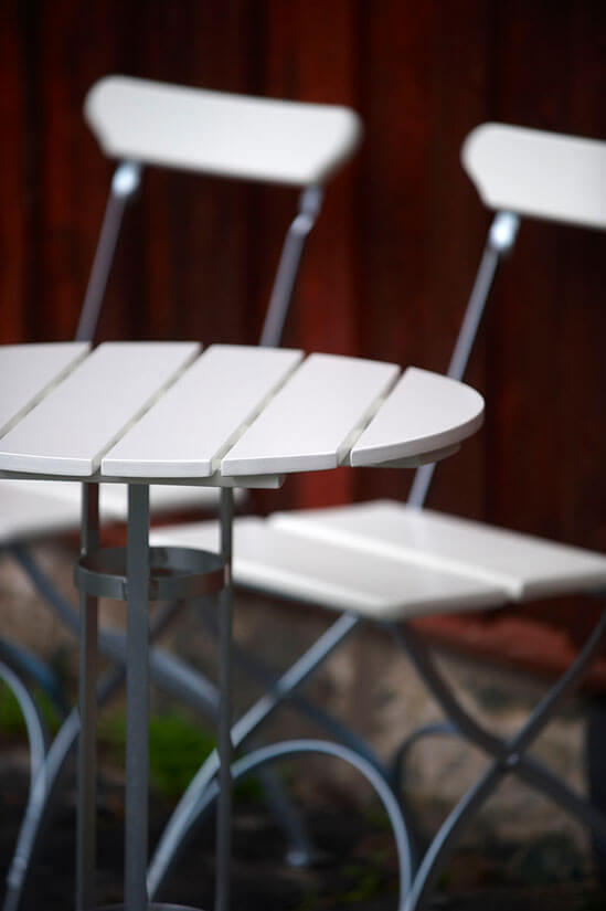 Det minsta bordet i Bryggeriserien, Trefotsbordet är mycket lättplacerat med sina Ø60 cm, passar utmärkt till frukosten eller eftermiddagskaffet med tillhörande Bryggeristol. Bordet har ett varmförzinkat stativ med trädetaljer i vitlackad ek, oljad ek eller obehandlad teak. Skydda underlaget och på samma gång gör bordet smidigare att flytta på genom att komplettera med golvskydd.