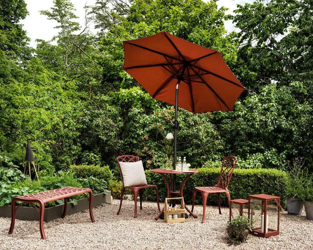 Cambre är ett prisvärt parasoll i flera färger från Brafab. Det moderna och stilrena solskyddet har en lackad 2-delad aluminumstång med en väv av 200 gr polyester med ventilationslucka. Cambre har både vev- och tiltfunktion vilket gör det enkelt att justera solskyddet så att du får skugga där du önskar.