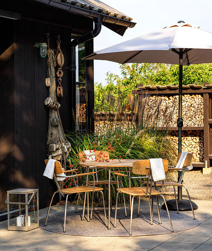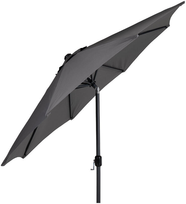 Den tvådelade stången gör det smidigt att förvara parasollet under andra halvåret. Välj på flera färgkombinationer. Parasollet finns i de runda storlekarna; 200, 250 och 300 cm samt som halvparasoll 250x130 cm.