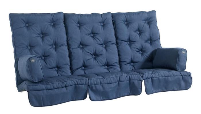 Canyon hammockset med tre höga hammockdynor samt ett par sidokuddar. Dynorna och sidokuddarna är boxsydda och är sydda med kederlist, knapparna är klädda och sidokuddarna har var sitt emblem. Mellan sitsen och ryggen sitter två par snören för möjlighet att knyta fast dynan i hammocken. Framsida av strukturdralon och baksida av svart Nonwoven. Måtten i produktinformationen är per dyna.