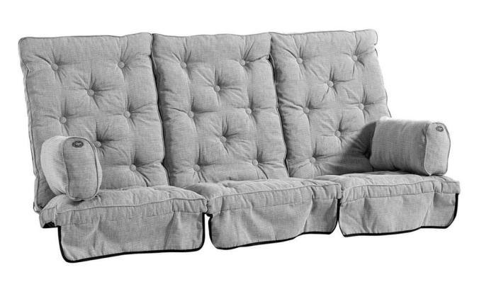 Canyon hammockset med tre höga hammockdynor samt ett par sidokuddar. Dynorna och sidokuddarna är boxsydda och är sydda med kederlist, knapparna är klädda och sidokuddarna har var sitt emblem. Mellan sitsen och ryggen sitter två par snören för möjlighet att knyta fast dynan i hammocken. Framsida av strukturdralon och baksida av svart Nonwoven. Måtten i produktinformationen är per dyna.