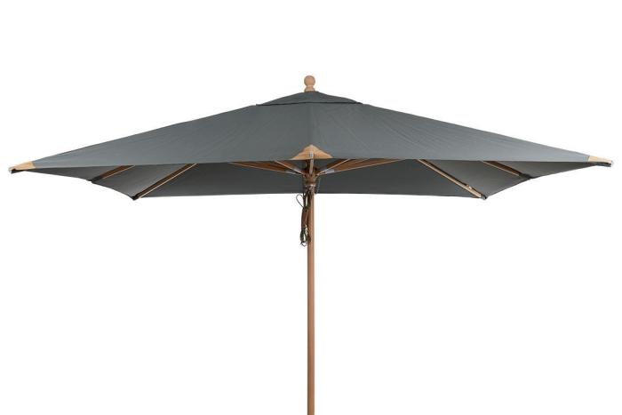 Como är ett träparasoll i storleken 300x300 cm av FSC-märkt trä (sycamore) med mattlackad yta. Parasollet har fina detaljer så som läderskoningar och upphängning för repet. Tak av 250 g polyester i valfri färg matchar den fina trästolpen i naturfärg. Stångens diameter är 48 mm. Como är inte tiltbart.