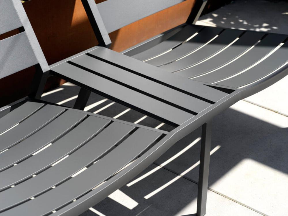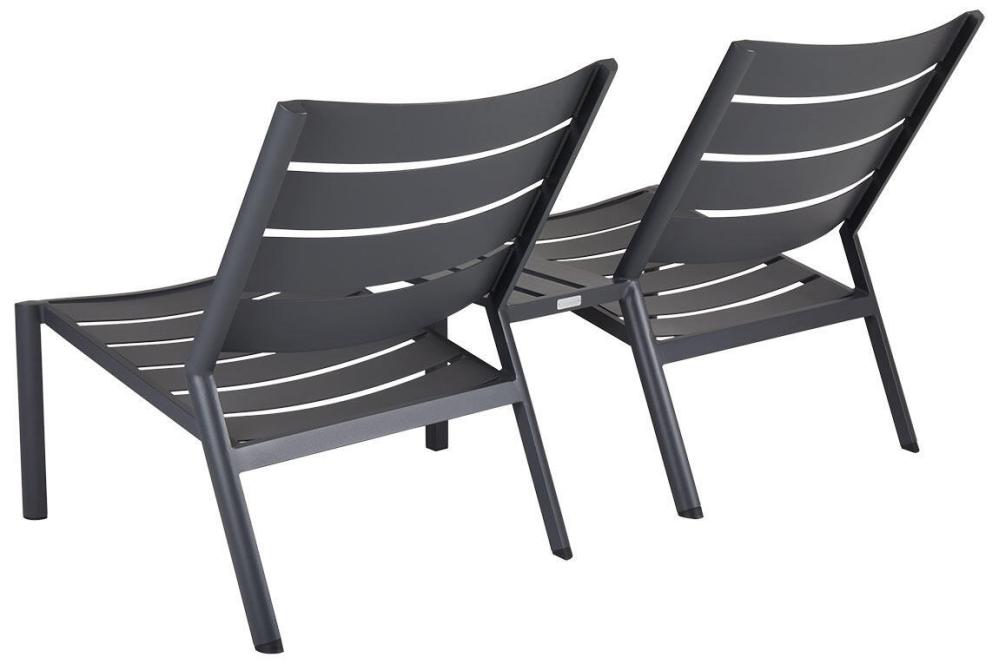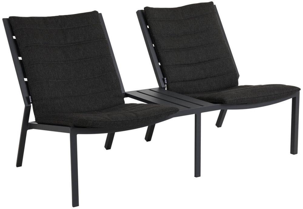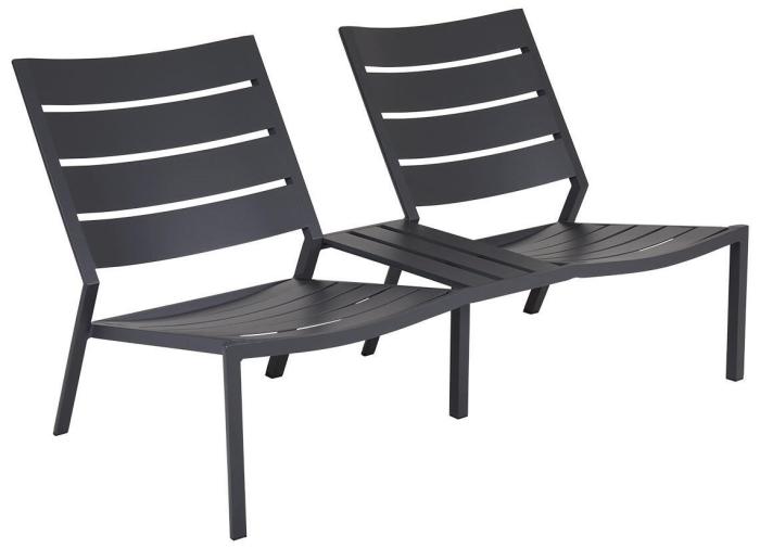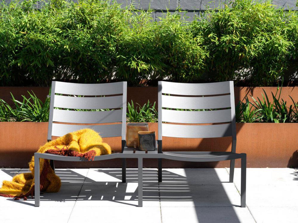 Delia är en modern kollektion trädgårdsmöbler från Brafab. En del av serien är den här duo-soffan helt tillverkad av mattlackad aluminium. Relaxmöbeln finns i färgerna antracitgrå och röd (burnt paprika).