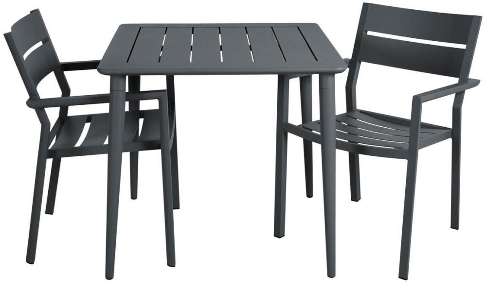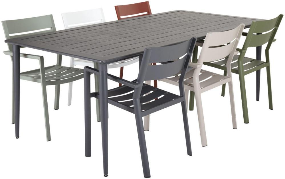 Delia är en modern kollektion trädgårdsmöbler från Brafab. En del av serien är den här karmstolen helt tillverkad av mattlackad aluminium. Stolen finns i färgerna antracitgrå, beige (khaki), grön (moss green och dusty green), röd (burnt paprika), ljusgrå, svart och vit. Modellen går bra att stapla för smidig förvaring.
