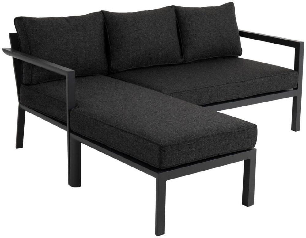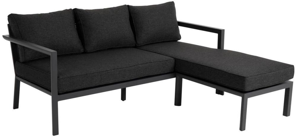 Delia är en modern kollektion trädgårdsmöbler från Brafab. En del av serien är den här divansoffan med sin nätta mått. Loungesoffan har en mattlackad antracitgrå, ljusgrå eller khakifärgad aluminiumstomme med tre sköna ryggplymåer och två sittplymåer, klädda i mörkgrått (nearly black) olefintyg, ett tyg som håller extra bra mot solens strålar och blekning. Divandelen är separerad som en löstagbar och flyttbar modul som enkelt flyttas från valfri sida av 3-sitsen.