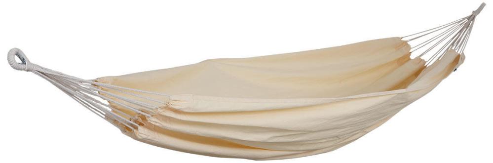 Dvala hängmatta i ljusgult bomullstyg. En stor hängmatta i kraftig bomull med plats för två. Hängmattan har många upphängningssnören vilket bidrar till komfort och lång livslängd. Fler snören fördelar vikten jämnare, vilket ger en känsla av viktlöshet. Komplettera gärna med upphängningsband Veranda eller valfritt hängmattestativ (säljes separat).