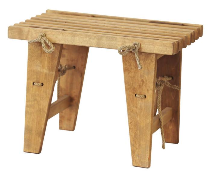 Bänken i björk är värmebetsad med ljusbrunt pigment. Den håller sig bra i färgen över tid och kan stå ute under sommarmånaderna. Behandla med genomskinlig träolja cirka 1 gång / år eller vid behov. Första året behövs den inte behandlas då bänken är behandlad från fabriken. Då bänken är ny bör den torkas av med våt trasa, då man ibland får lite fällningar från färgen. Repen i hampa ska efterdras vid behov.