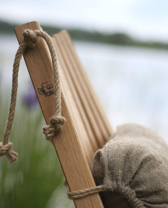 En bekväm och anpassningsbar vilstol som du enkelt kan justera så att den passar din personliga smak genom att dra åt hamparepen. Komplettera med en linnekudde som är speciellt designad för möbeln.