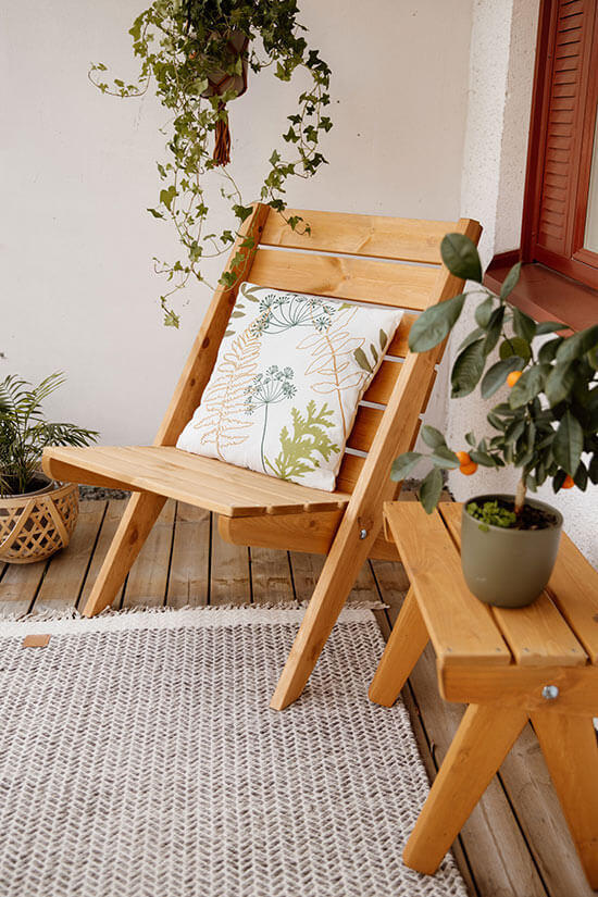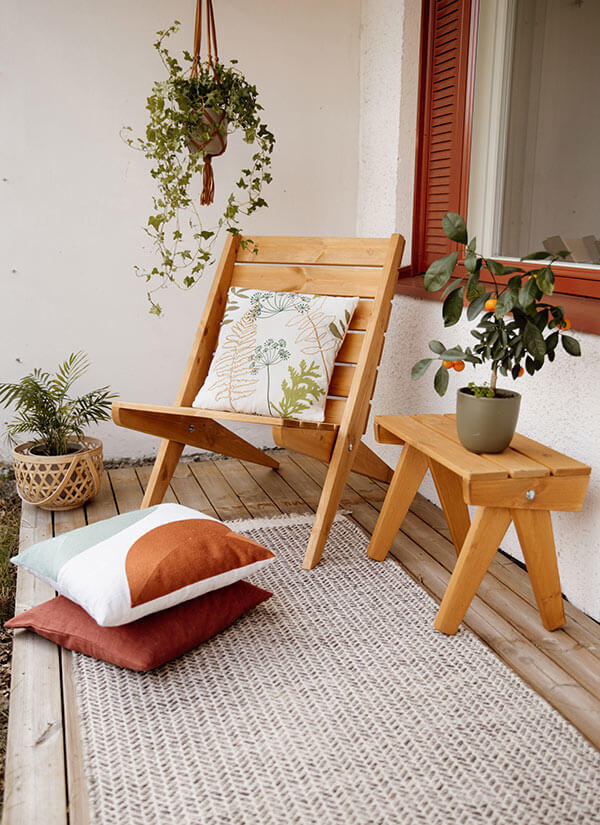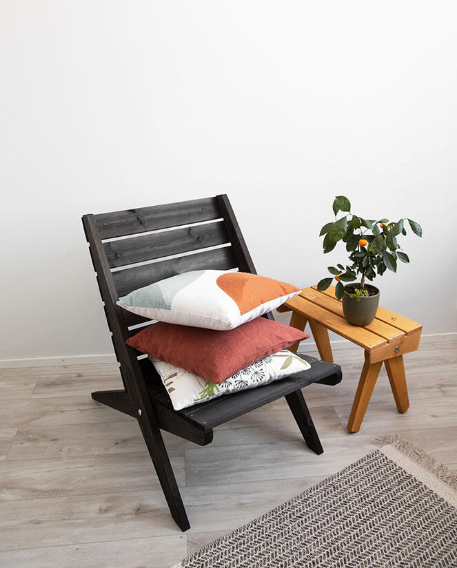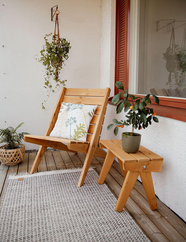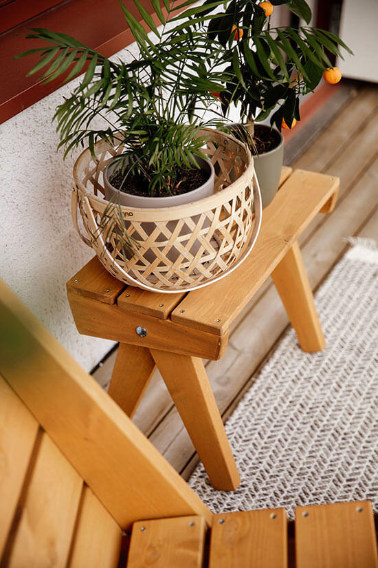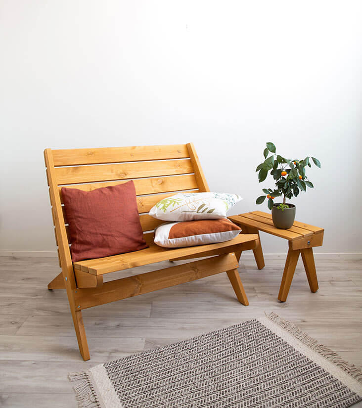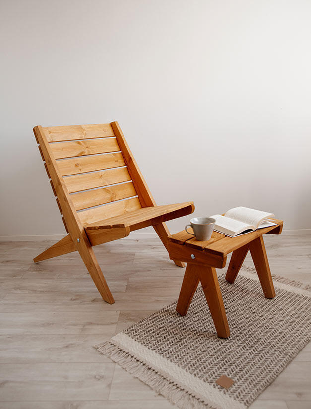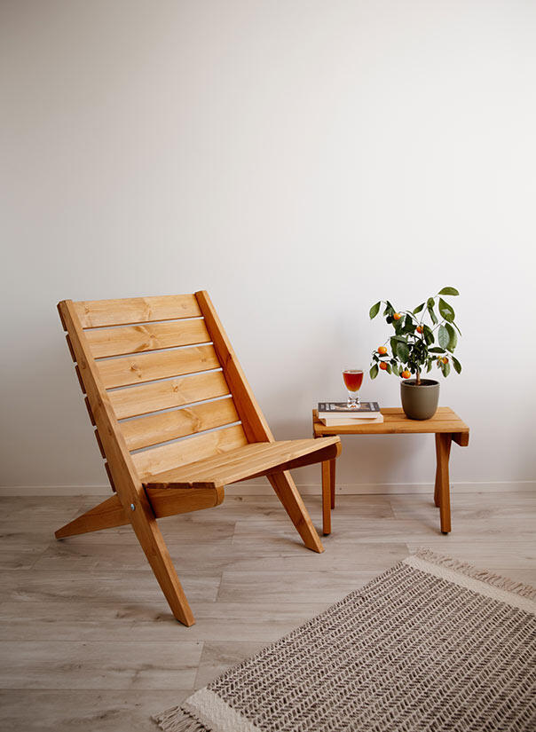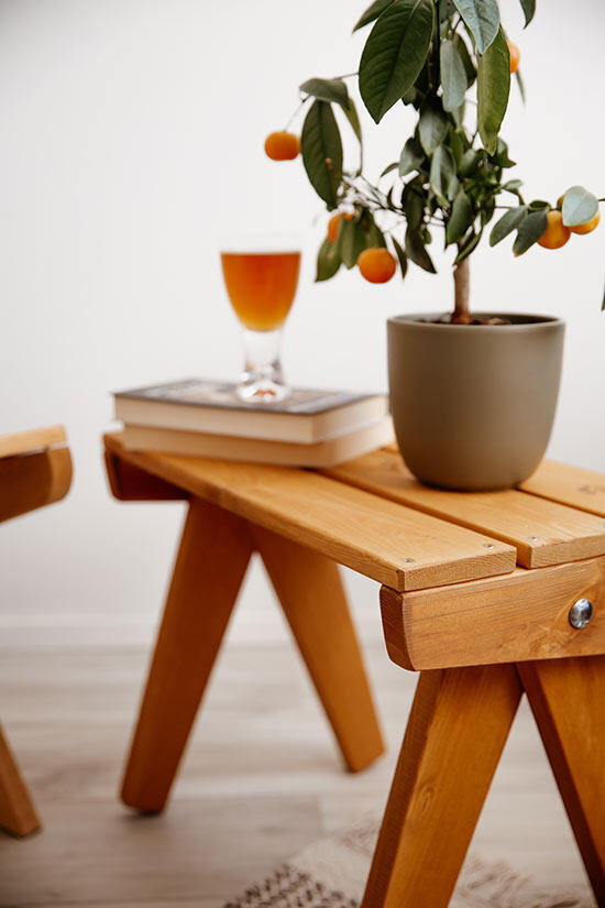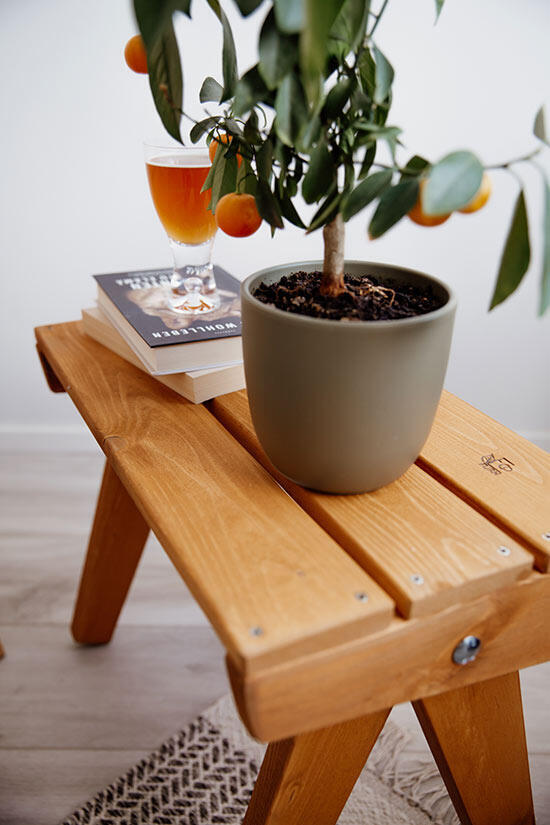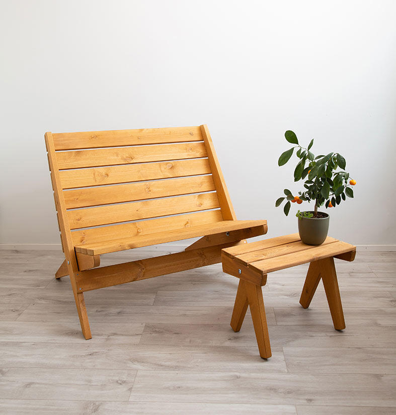 Tillverkad i ockra oljad furu. Furuns naturliga och unika mönster är svagt synligt genom den transparenta oljefinishen. Modellen passar både för inomhus- och utomhusbruk.