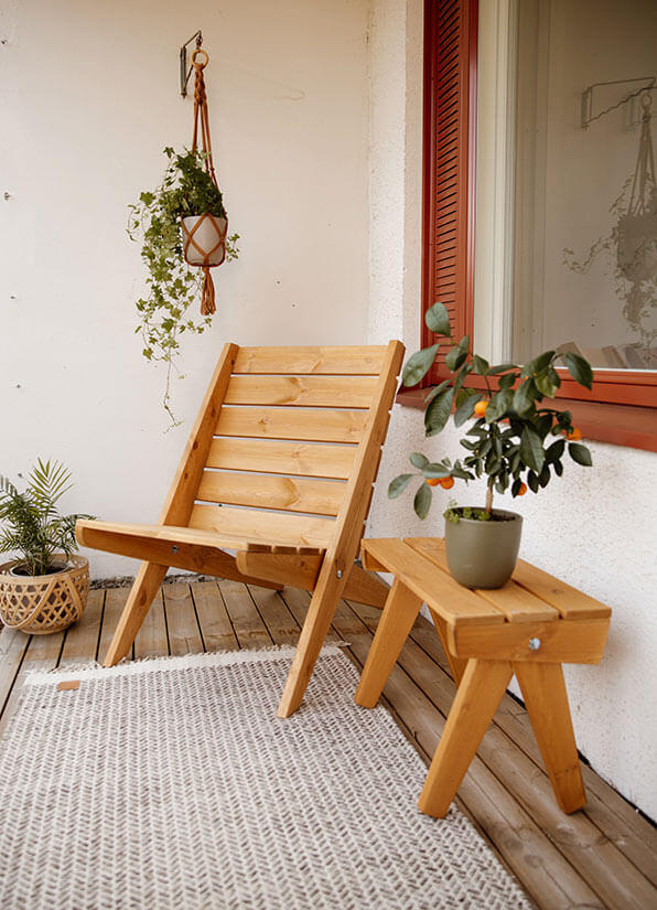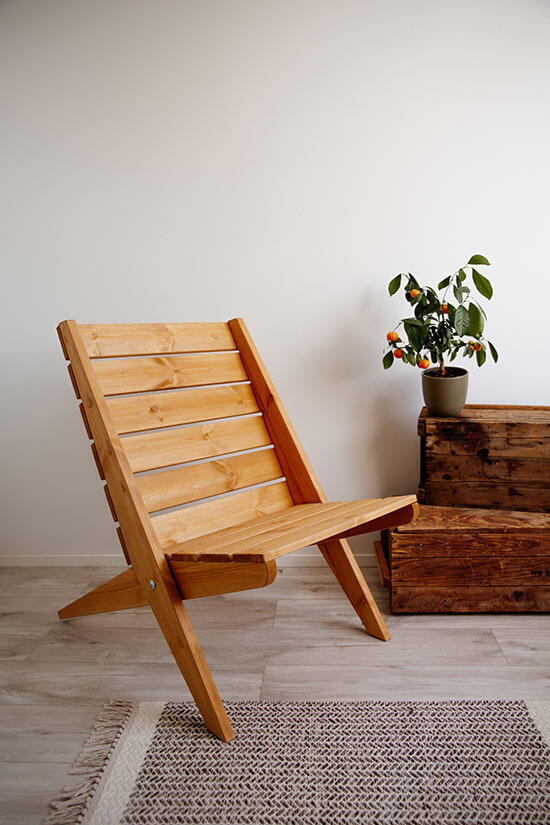 Tillverkad i ockra oljad furu. Furuns naturliga och unika mönster är svagt synligt genom den transparenta oljefinishen. Modellen passar både för inomhus- och utomhusbruk.