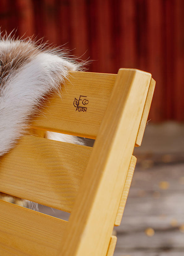 Stolen behåller sin färg väl över tid. Behandla den med genomskinlig träolja eller EcoFurn® pigmenterad olja ungefär en gång per år eller vid behov. När stolen är ny bör den torkas av med en våt trasa eftersom man ibland får lite fällningar från färgen.