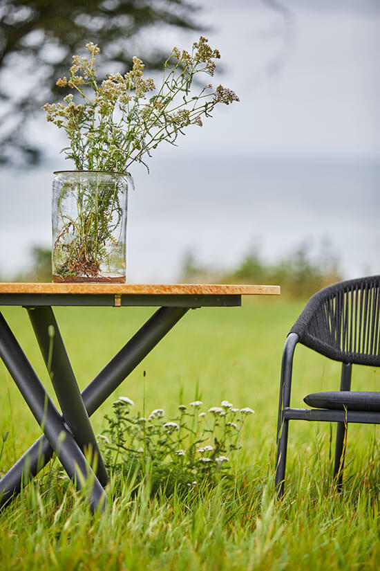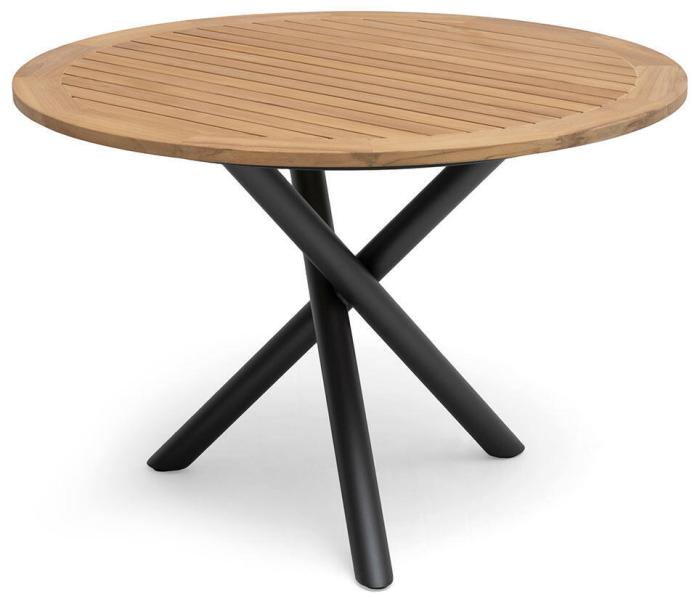 Ekeryd är ett runt och lättplacerat matbord som kan kombineras med ett flertal olika matstolar och fåtöljer, på så sätt kan du skapa din egna känsla och sköna plats. Ekeryd utebord har en stabil kryssfot som gör att bordet står stadigt såväl i trädgården som på altanen. Bordet har en bordsskiva av FSC®-märkt kvalitetsteak och underrede i antracitgrå pulverlackad aluminium.