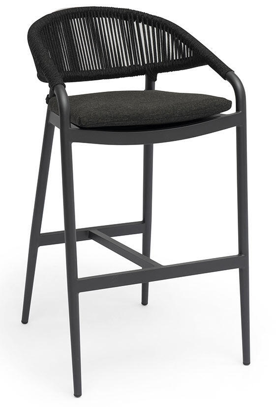 Stol: Aluminiumstomme flätad med akrylrep och sits klädd i textilene